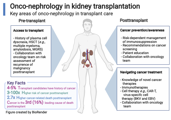 As populations ages and cancer prevalence increases, 4-5% of patients with end-stage kidney disease have history of cancer. Cancer used to be considered as a contraindication for transplantation, but we aim to help patients (especially with multiple myeloma and AL amyloidosis in remission) get an opportunity for kidney transplantation. Contact WashU Kidney Transplant Team for more details. Murakami Lab collaborates with Siteman Cancer Center Oncology teams to help improve care for kidney transplant recipients with cancers.
